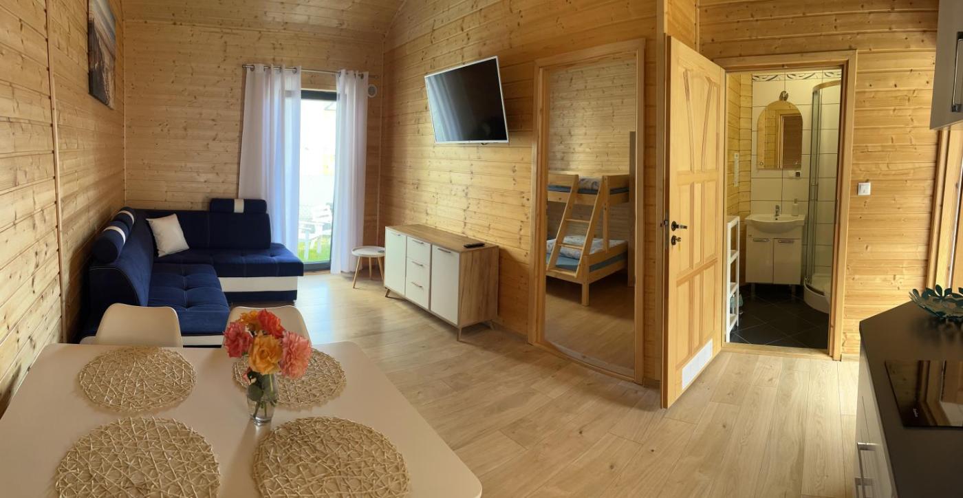Dom wakacyjny. Boasting a private entrance, this holiday home also features 1 living room, 1 separate bedroom and 1 bathroom with a shower. Guests will find a stovetop, a refrigerator, a dishwasher and kitchenware in the well-equipped kitchenette. The holiday home also comes with a barbecue. Featuring a terrace with garden views, this holiday home also features a wardrobe and a flat-screen TV. The unit has 2 beds. Dom wakacyjny - 5 osobowy. Powierzchnia pokoju ok.: 27 mkw.